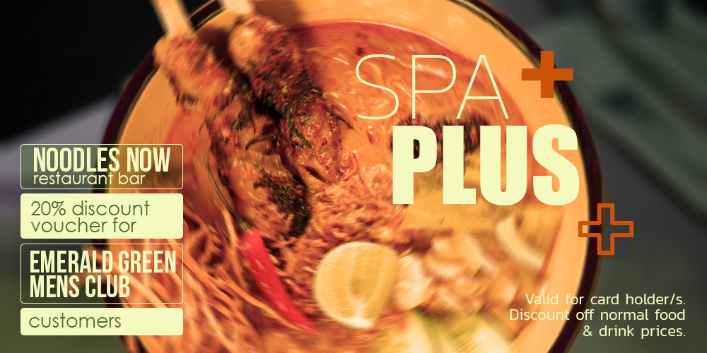 すべてのスパのお客様は NOODLES NOW レストランバーの飲み物と食べ物で20%割引のカードを受け取ります。